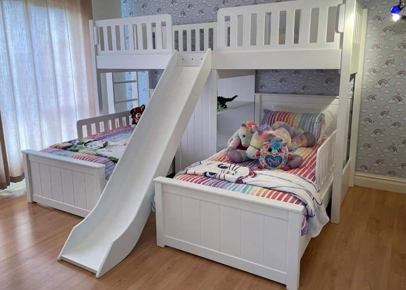 The highlight of this bed is the slide which is positioned between both beds, this fun addition makes bedtime so