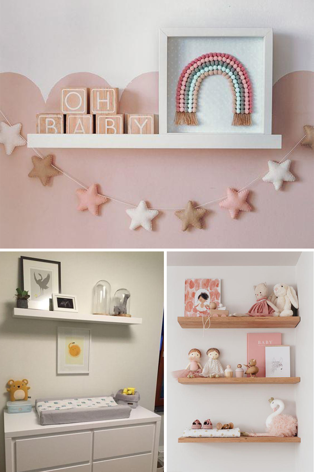 Stunning nurser décor shelves for the nursery. Choose from our wide range. Colour and dimensions can be customized