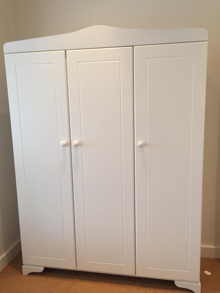 The wardrobe features hanging rails with shelving in the center. You can customize the settings you meet your preference. A classic timeless design that’s durable and functions