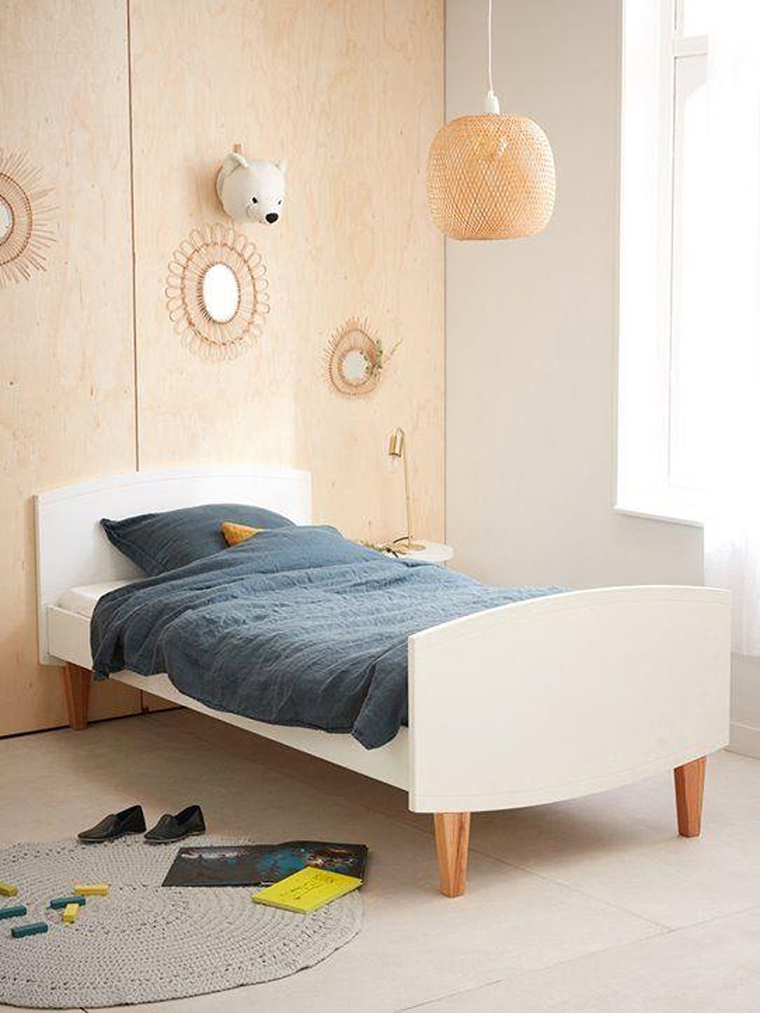 style, while its natural wooden legs add a touch of organic beauty.