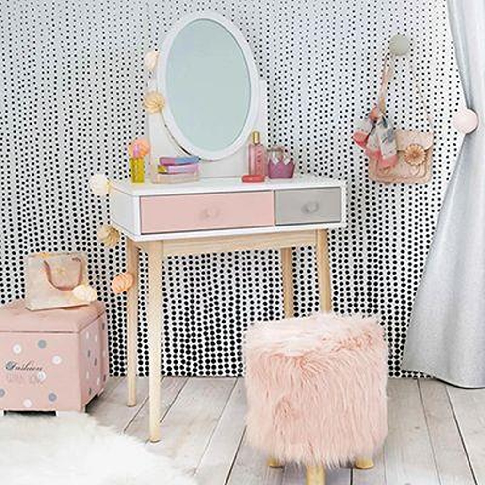 Nordic Dressing Table Solid Wood Marble Vanity Desk Bedroom Makeup Table Bedroom Furniture Dressers with Mirror Flannel Chair