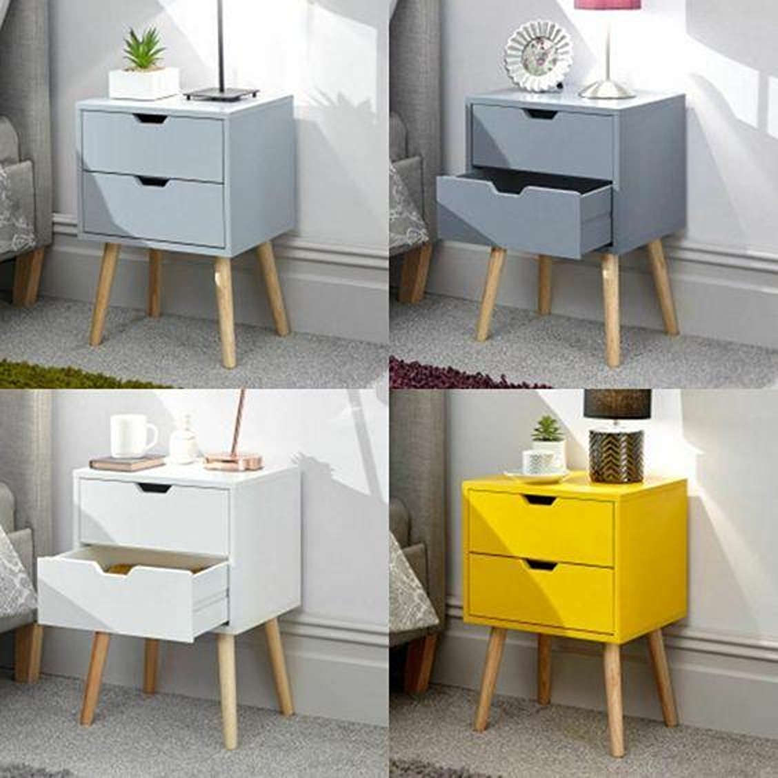 Spruce up your bedroom with a funky Nyborg bedside table – or two! This Scandi-inspired unit makes a virtue out of simplicity. The classic cuboid form is just the right size to accommodate a lamp and a book or two, while the two handy drawers feature classic cut-out handles for simple yet effective operation. The whole is painted in a choice of on-trend colors – including exciting new shades of warm pink, soft green and ink blue – and mounted on pale-wood legs
