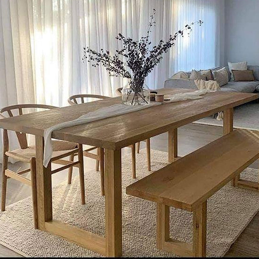 This charming dining set is crafted from solid wood with a warm, natural finish. The table features a trestle base with clean lines and a modern silhouette. The one benche and two chairs offer ample seating for your family and guests.