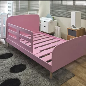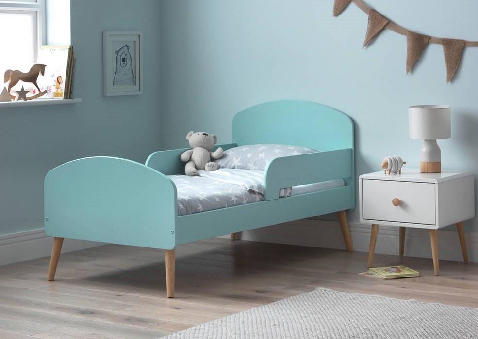 A Scandinavian-inspired design toddler bed comes in a range of beautiful colors with natural wooden legs. It creates a cozy and inviting atmosphere for a child’s room. Guardrails are optional