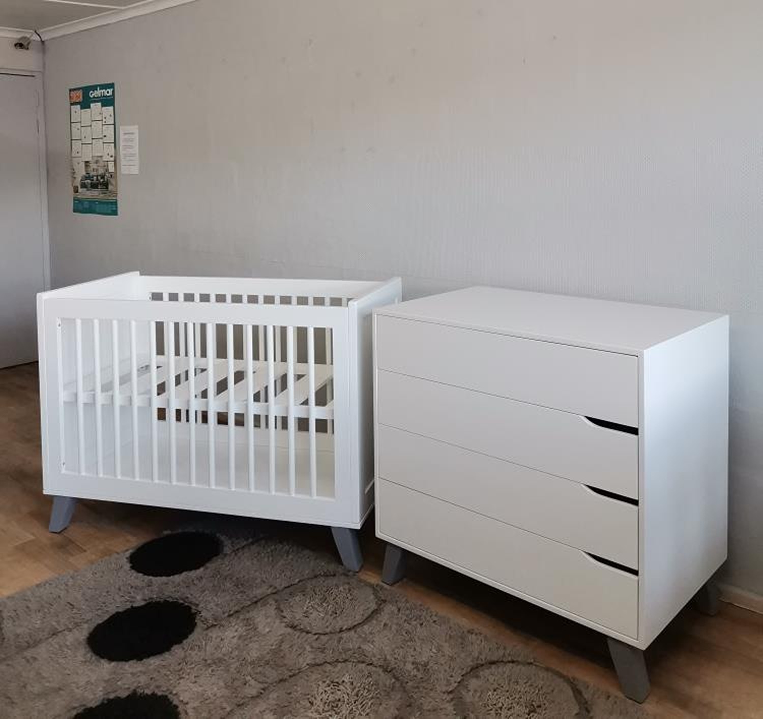 set featuring a white crisp finish with grey legs, it contrasts beautifully with the